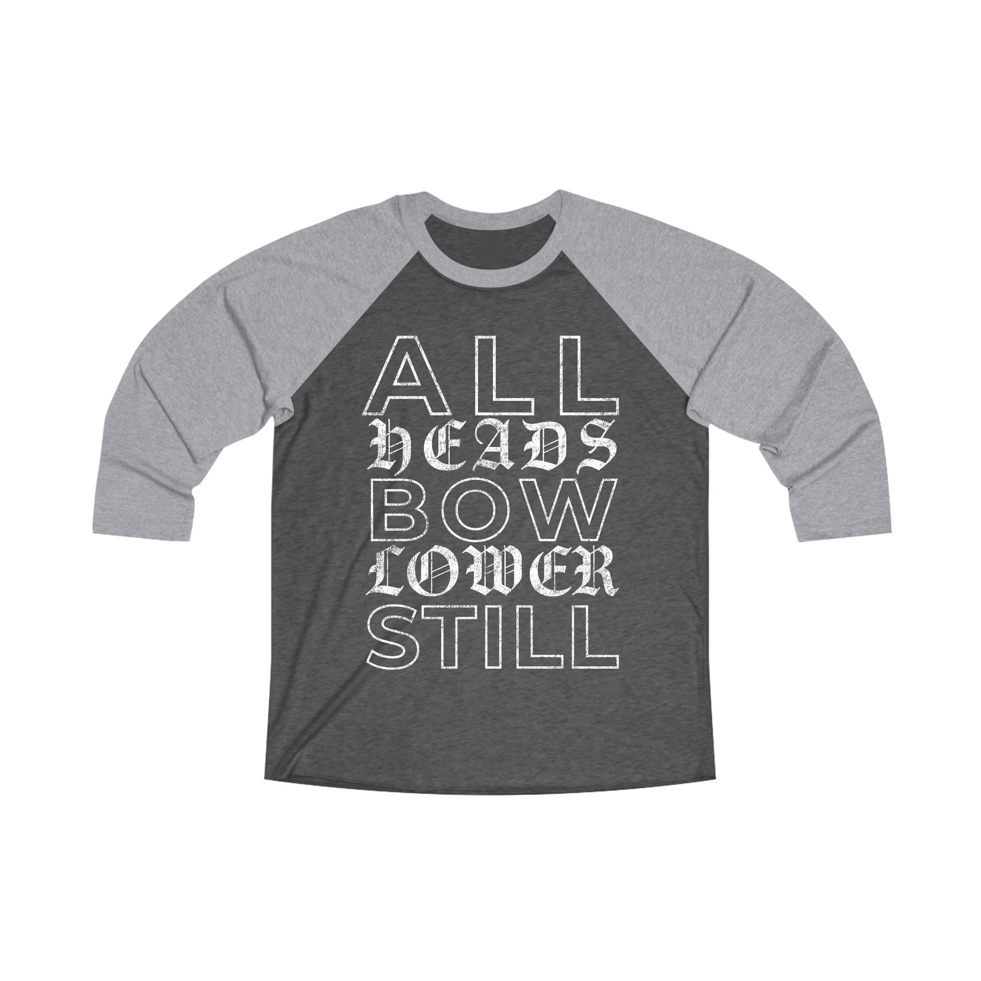 A classic look with a powerful message. This baseball tee features “ALL HEADS BOW LOWER STILL” boldly across the front, making a statement that’s as timeless as it is true. With its raglan sleeves and relaxed fit, it brings that vintage athletic vibe while keeping you comfortable all day long.