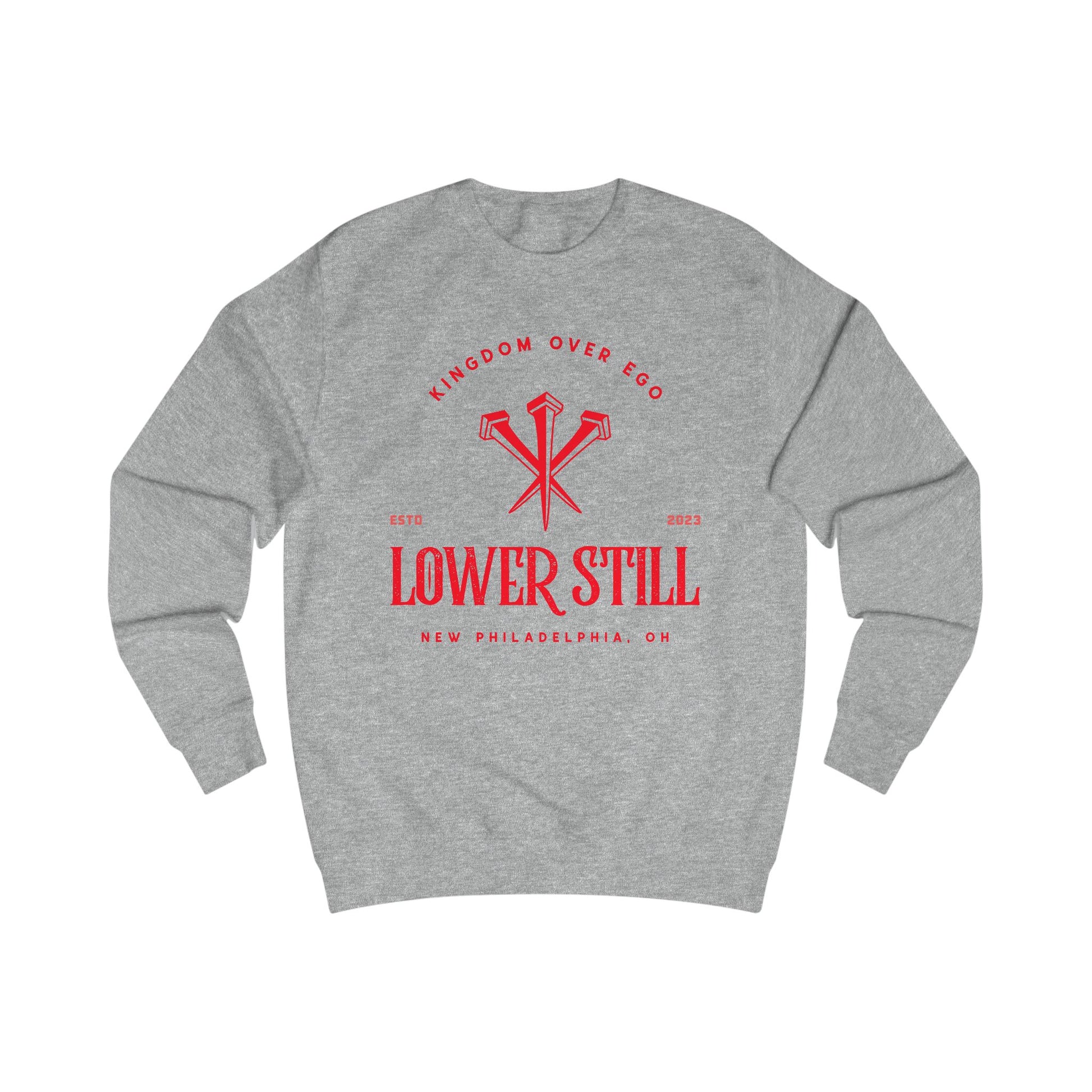 Carry the heart of our brand in a clean, powerful design with the Lower Still Creed Crewneck Sweatshirt. Centered on the chest: our name, our credo, and three nails — a bold emblem of faith, sacrifice, and conviction.