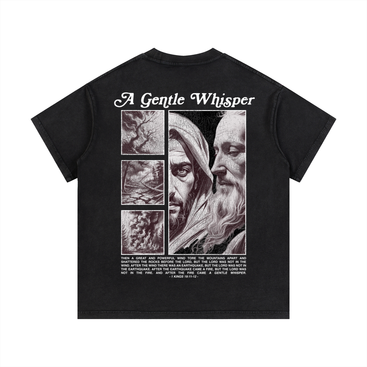 The back features a thoughtfully designed depiction of 1 Kings 19:11–12 — Elijah’s encounter with God, not in the wind, earthquake, or fire, but in the gentle whisper. The artwork captures the stillness of that moment, inviting reflection and peace.